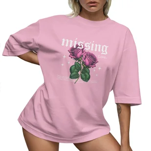 T-Shirt Oversize Luźna Koszulka Róże Bawełna L Sukienka Jakość