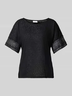 T-shirt damski VILA;Mieszanka wiskozy;Prosty krój;Model ‘NULAN’;Okrągły dekolt;Szydełkowa koronka;Długość tyłu w rozmiarze S: 58 cm