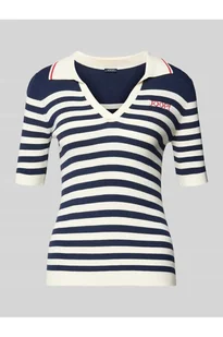 Damski t-shirt marki JOOP! Model 'Kolo' z Mieszanka wiskozy przyjemnie przylega i dzięki swojemu dopasowanemu krojowi podkreśla sylwetkę, podczas gdy Imitacja dzianiny zapewnia subtelny Faktura. Wykładany kołnierz z Dekolt w serek nadaje projektowi klasyczny charakter, uzupełniony o Długość 3/4 rękawa.