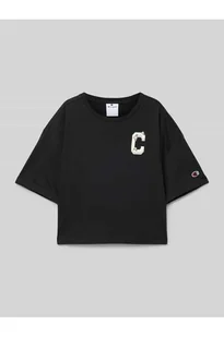 T-shirt dziecięcy CHAMPION;Czysta bawełna;Prosty krój;Okrągły dekolt;Nadruk z logo;Długość tyłu w rozmiarze 140: 37 cm