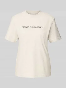 T-shirt damski Calvin Klein Jeans;Czysta bawełna;Dopasowany fason;Okrągły dekolt;Nadruk z logo;Długość tyłu w rozmiarze S: 59 cm