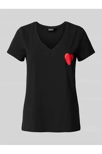 T-shirt damski PIECES;Mieszanka bawełny i elastanu;Prosty krój;Jednolity kolor;Dekolt w serek;Nadruk z motywem i napisem;Długość tyłu w rozmiarze S: 59 cm