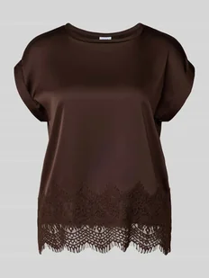 T-shirt damski Vila;Luźny krój;Okrągły dekolt;Model ‘ELLETTE’;Obszycie koronką;Satyna;Długość tyłu w rozmiarze 36: 59 cm