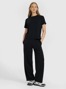 T-shirt z prążkowanej dzianiny z modalem damski 4F – komfort i wyrafinowany fason na co dzień T-shirt z prążkowanej dzianiny z modalem damski 4F to elegancka propozycja, która łączy wysoką jakość materiału z wyrafinowanym stylem. Miękka dzianina prążkowana dodaje tekstury i subtelnego charakteru, a dodatek modalu zwiększa komfort noszenia i poprawia uczucie otulenia. Klasyczny krój regular idealnie układa się na sylwetce, oferując swobodę ruchów i nowoczesny wygląd. T-shirt posiada okrągły dekolt i wykończenia gwarantujące trwałość formy, co czyni go doskonałym elementem codziennej garderoby — do pracy, spotkania czy wyjścia z przyjaciółmi. Najważniejsze cechy: