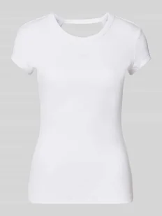 T-shirt z prążkowaniem i wyhaftowanym logo