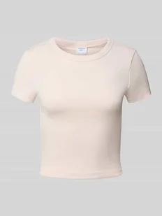 T-shirt damski Gina Tricot;Mieszanka bawełny z dodatkiem streczu;Dopasowany krój;Okrągły dekolt z prążkowanego ściągacza;;Długość tyłu w rozmiarze S: 42 cm