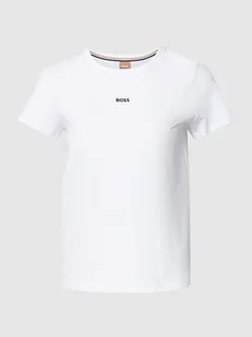 T-shirt damski BOSS;Czysta bawełna;Prosty krój;Model ‘Eventsa’;Jednolity kolor;Okrągły dekolt;Wyhaftowane logo;Długość tyłu w rozmiarze S: 57 cm