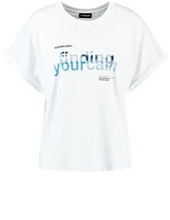 Taifun T-shirt damski, biało-niebieski wzór, 46 PL