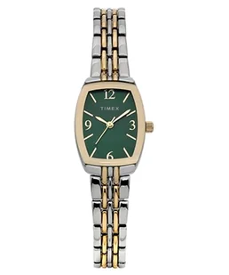 Timex Trend Zegarek damski 21 mm – dwukolorowa bransoletka ze stopu metali z zieloną tarczą i dwukolorową kopertą, TW2Y22300