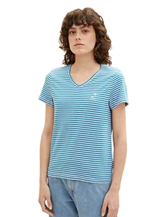 TOM TAILOR koszulka damska z haftem, 32153 - petrol pink thin stripe, 3XL