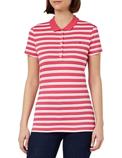 Tommy Hilfiger Damska koszulka polo z krótkim rękawem, wąska koszulka polo w paski, Pink Splendor/biały, S