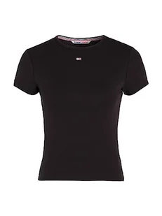 Tommy Jeans Tjw BBY Essential Rib Ss S/S dzianinowe topy, Czarny, XS