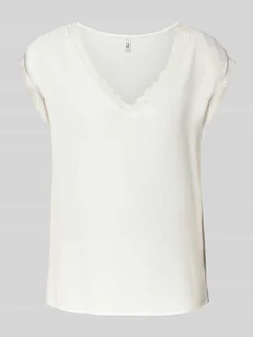 Top bluzkowy damski Only;Model ‘Jasmina’;Efekt: jednolity kolor;Krój: Krój loose fit;Dekolt: Dekolt w serek;Aplikacja: Obszycie koronką ;Wykończenie: