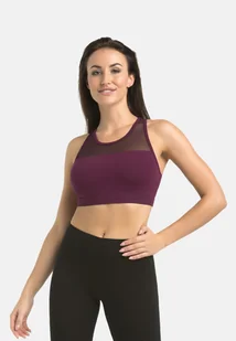 Top damski wykonany z wysokiej jakości wiskozy połączonej z lycrą. Jego długość sięga pod biust. W górnej części znajduje się delikatna oraz przezroczysta si...