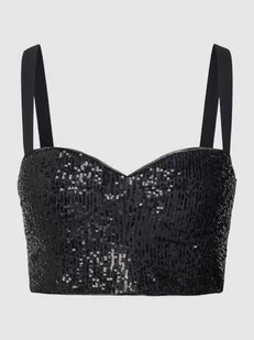 Krótki top damski SWING;Mieszanka materiałów z dodatkiem streczu;Dopasowany krój;Kolory uni;Cekinowe obszycie;Cienkie ramiączka;Zamek błyskawiczny na plecach;Długość tyłu w rozmiarze 36: 16 cm