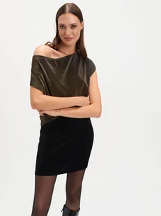 Elegancki top z marszczonym dekoltem to must-have każdej garderoby. Klasyczny czarny kolor czyni go uniwersalnym i łatwym do zestawienia z różnymi stylizacjami. Model jest nie tylko wygodny, ale też delikatnie połyskuje, dodając szyku i elegancji. Ten modny top świetnie sprawdzi się zarówno w codziennych zestawieniach, jak i podczas wyjątkowych okazji, dodając szyku i elegancji każdej stylizacji.