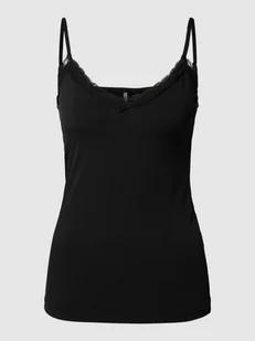 Top damski Pieces;Elastyczna mieszanka materiałów;Dopasowany fason;Jednolity kolor;Obszycie koronką;Cienkie, regulowane ramiączka;Długość tyłu w rozmiarze S: 44 cm