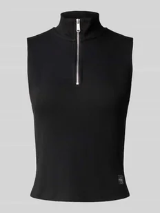 Top damski Calvin Klein Jeans;Mieszanka bawełny i elastanu;Krój slim fit;Efekt prążkowania;Stójka;Zamek błyskawiczny;Detal z logo;Długość tyłu w rozmiarze S: 45 cm