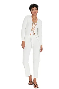 Trendyol Damska gładka cienka dzianina Hırka-Pantolon topy i spodnie, Ecru, L