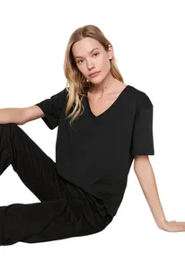 Trendyol Damska koszulka Loungewear Relaxed Standard V Neck Woven T-Shirt, Czarny, S