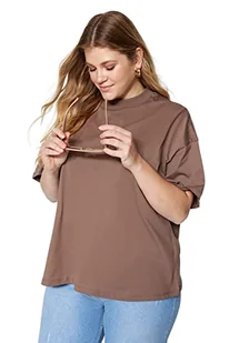Trendyol Damska koszulka oversize basic z okrągłym dekoltem z dzianiny plus size, Brązowy, 4XL Duże Rozmiary