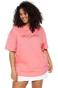 Trendyol Damska koszulka oversize basic z okrągłym dekoltem z dzianiny plus size, różowy, 3XL