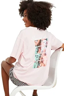 Trendyol Damska koszulka oversize z okrągłym dekoltem, różowy, L