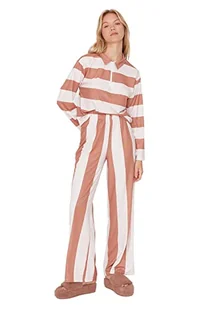 Trendyol Damska koszulka w paski z dzianiny środkowej — spodnie piżamowe zestaw, wielobarwny, S