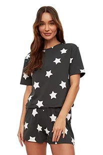 Trendyol Damska koszulka z dzianiny geometrycznej, średnia dzianina, krótka piżama zestaw, Bardzo kolorowy, L