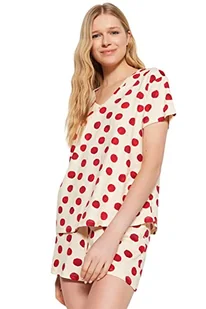 Trendyol Damska koszulka z dzianiny graficznej - zestaw krótkich piżam, bordowy, L, Burgund, L