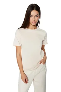 Trendyol Damska koszulka z dzianiny o regularnym kroju z okrągłym dekoltem, Jasny beż, XL