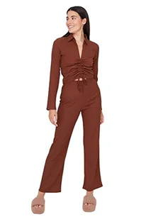 Trendyol Damska koszulka z dzianiny średniej średniej długości — spodnie piżamowe zestaw, Brązowy, L