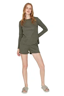 Trendyol Damska koszulka z dzianiny średniej średniej — krótka piżama zestaw, ZIELONY, XL