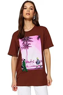 Trendyol Damska koszulka z dzianiny z okrągłym dekoltem, brązowy, S, Brązowy, S