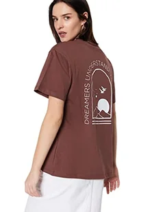 Trendyol Damska koszulka z dzianiny z okrągłym dekoltem i okrągłym dekoltem, Brązowy, S