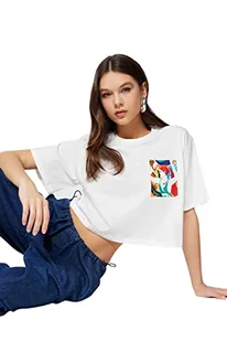 Trendyol Damska koszulka z dzianiny z okrągłym dekoltem o luźnym kroju, biały, XL