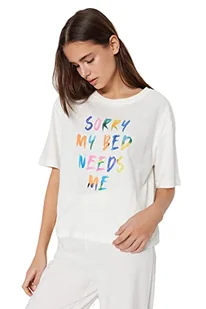 Trendyol Damska koszulka z dzianiny z sloganem - spodnie zestaw piżamy, ecru, S, Ecru, S