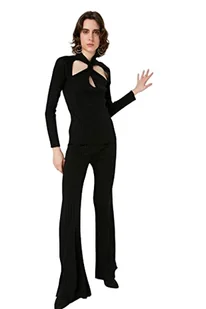 Trendyol Damskie gładkie wycięcie szczegółowe, cienkie dzianinowe topy i spodnie, Czarny, S