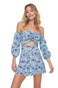 Trendyol Women's kwiatowy wzór, wiskoza-bottom-Top-Team Skirt Set, wielokolorowy, 36
