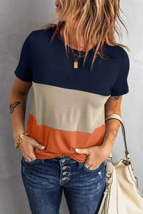 CECHY PRODUKTU: Krótki rękaw Luźny styl T-shirt Gładki wzór Okrągły dekolt Panelowy Trzykolorowy