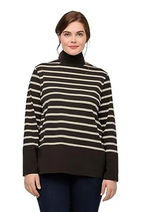 Ulla Popken Damska koszulka w paski z kolorowym blokowaniem kolorów, czarny/brązowy, 54/56