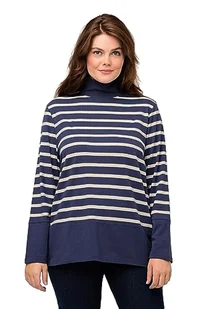 Ulla Popken Damska koszulka w paski z kolorowym blokowaniem kolorów, niebieski zielony, 58/60
