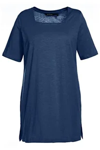 Ulla Popken Damska koszulka z długim rękawem, dekolt w kratkę, klasyczna, koszulka z rękawami do łokci, granatowa, 46/48