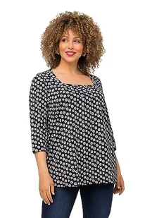 Ulla Popken Damska koszulka z falbankami z wycięciem Carre i nadrukiem w kropki, koszulka A-line, morski, 58/60