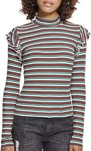 Urban Classics Damska koszulka z długim rękawem w paski z falbankami i dekoltem w serek, wielokolorowy (White/Green/Firered 01316), 5XL Duże rozmiary