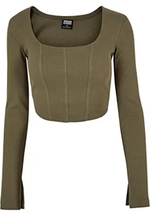 Urban Classics Ladies Short Rib Corsage Longsleeve Koszulka damska, Zielony (Olive), XL