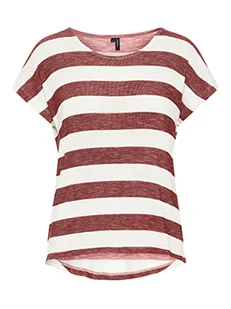 VERO MODA Koszulka damska z krótkimi rękawami w paski, Czerwone i białe paski, S