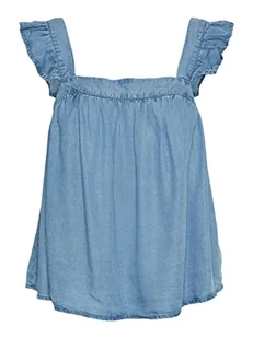 VERO MODA Women's VMHARPER SL Frill Short Top, Medium Blue Denim, M, niebieski (medium blue denim), M
