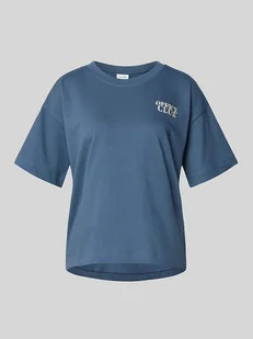 VILA NIEBIESKI T-SHIRT Z DEKOLTEM V MIEJSKI GŁADKI S KWB