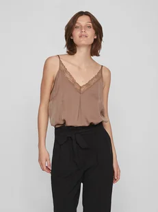 Vila Damski top na ramiączkach, zdobiony koronką, Brown Lentil, 34